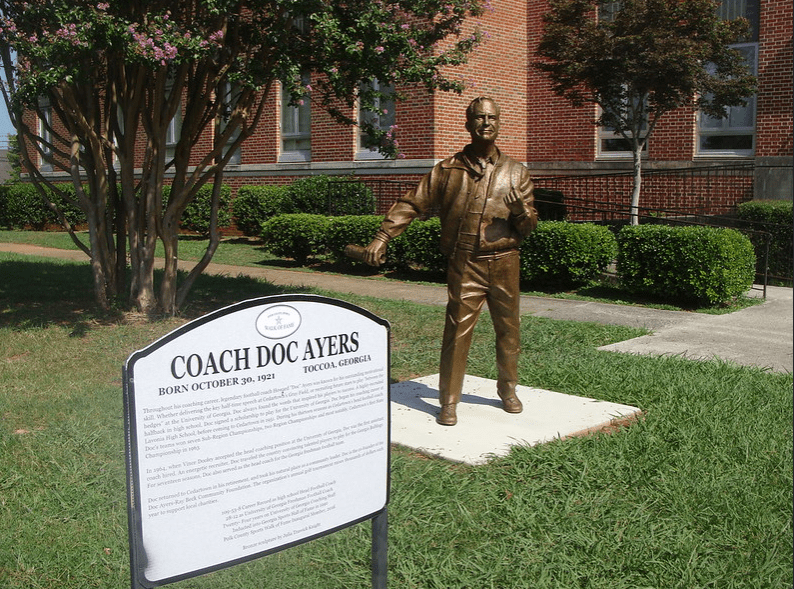 4-Doc Ayers became the Cedartown head coach in 1951 and remained for 13 seasons, including their state championship team of 1963. He was hired by new Georgia Head Coach Vince Dooley in 1964. Cedartown’s football stadium is currently named for Coach Ayers.